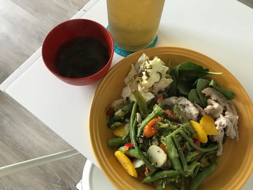 さてさて。昨日の朝ごはんは、鶏レバーに、納豆、ごはん100g、野菜スープ+とろろこんぶ。432キロカロリー。