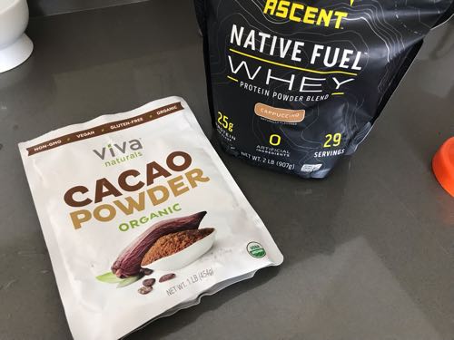 帰ってきてプロテイン。甘いのでカカオパウダーも入れて苦味足し!