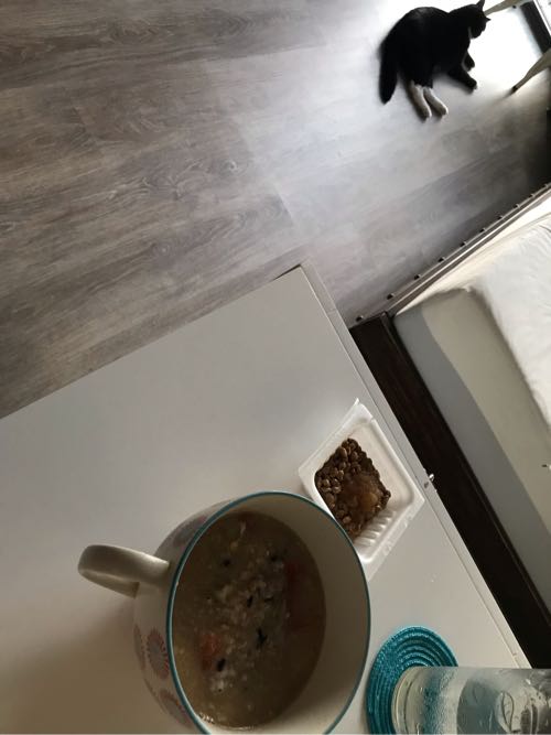 昨日はお粥におからパウダーを入れてみたよ。