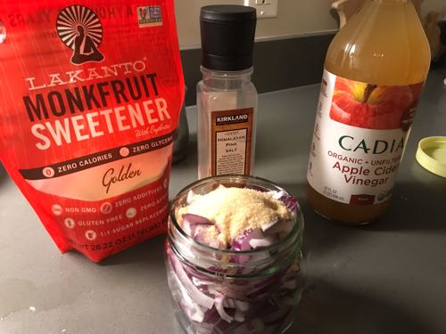 夜は赤玉ねぎのピクルス的なのを漬けて。