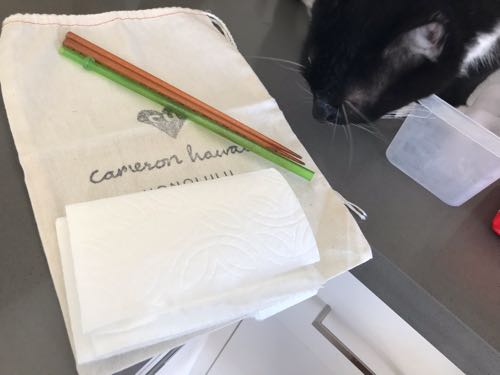 ちなみに、最近持ち歩き始めたマイ箸使用だよ!いろいろセットを買おうと思ってたんだけど「あ、家にあるもの持ち歩けばいいんじゃん」と思って、ちょうど良さそうな袋を発見したので、これに入れて持ち歩いてます。