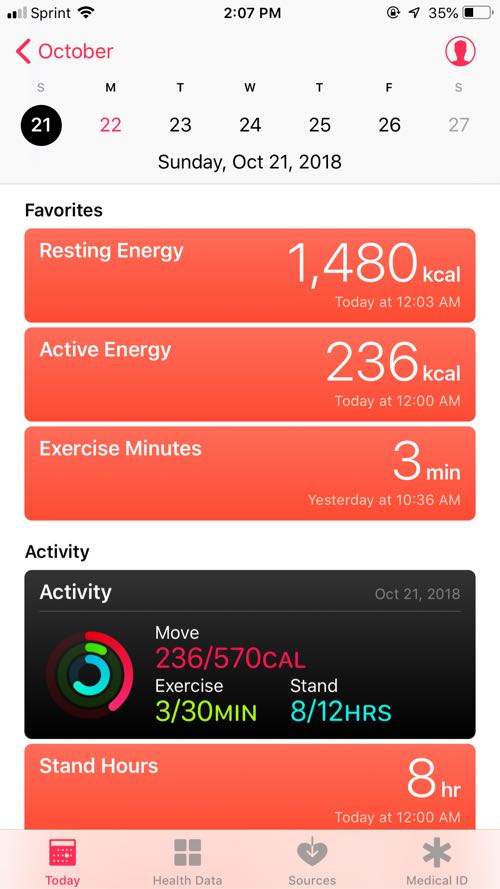 消費カロリーはこんな感じ。あんまり動いてないので、低いです。