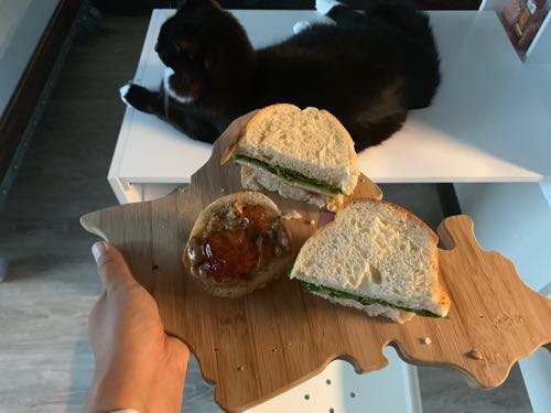 さて、昨日の朝ごはんはサンドイッチ。マスタードたっぷり塗ってアルグラとハムとチーズを挟んだの!でもなんか何かが足りない感じで、グアバジェリーを挟んでみたら…大正解!