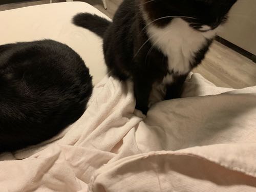 とは言え、ちょっと端っこを繕いたかったので準備してたら、たまさんがタオルケットに大興奮して針仕事できませんー!