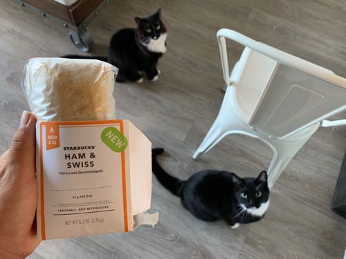 さて、昨日の朝ごはんはスタバのハムチーズサンド。