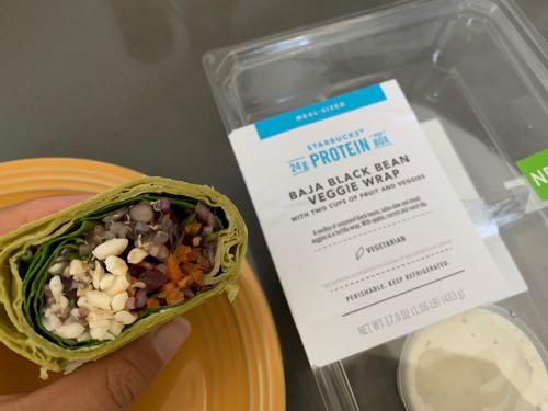 ランチもスタバのボックス。ベジラップを半分。これ新商品なんだけど、まあまあね〜。チキンラップの方が美味しいよ!