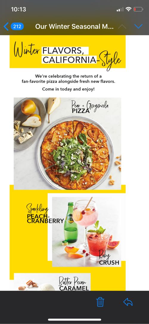 カリフォルニアピザキッチンは、わたしの大好きなゴルゴンゾーラと梨のピザがメニューから消えてから足が遠のいていたのですが…!