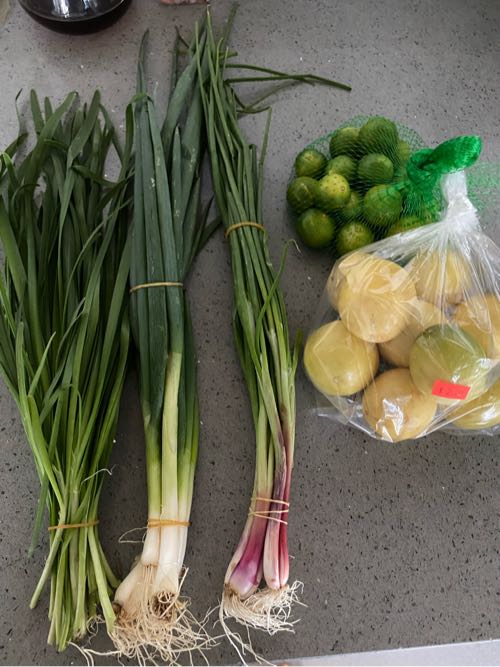 いつものオバちゃんの店で、ネギとニラとリリコイ、カラマンシー!全部で6ドル。やっぱり安い😍