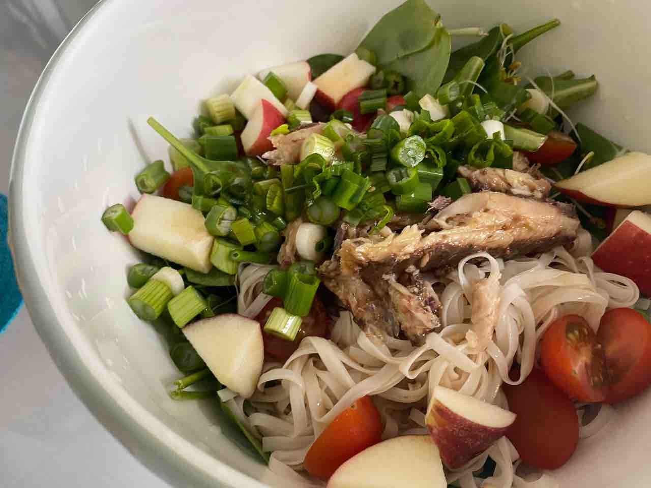 ベビーリーフのミックス、スプラウト、トマト、りんご、糖質ゼロ麺に…。このサーディン!