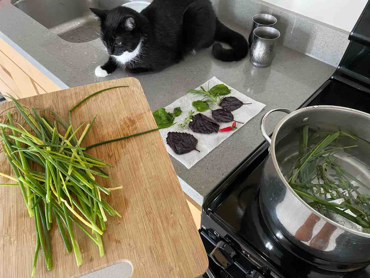 レモングラスはちょびっと猫さんに分けて。(ハサミ危ないね…💦)