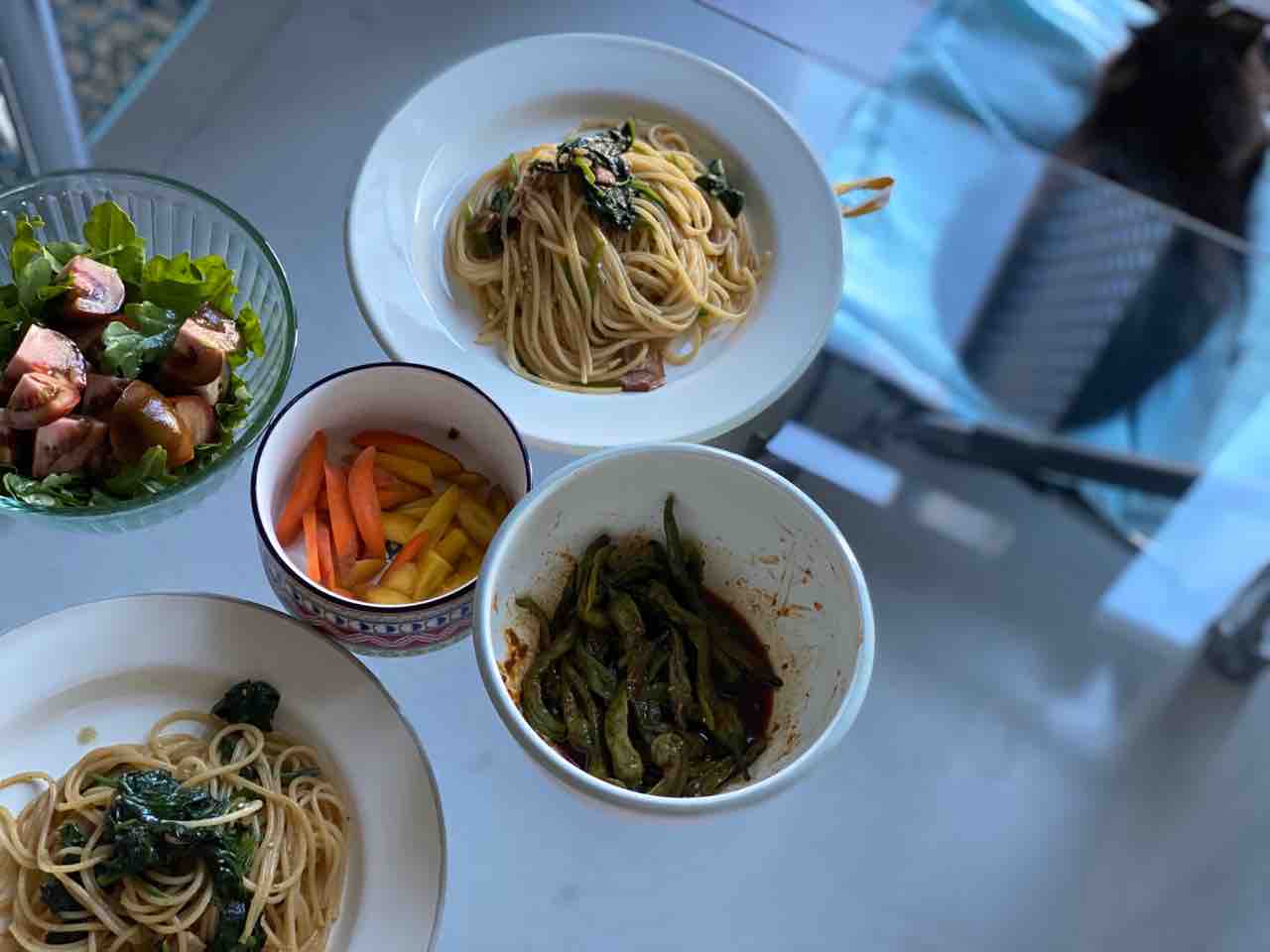 そして、夜ご飯は、「ほうれん草とベーコンの醤油味」パスタ!