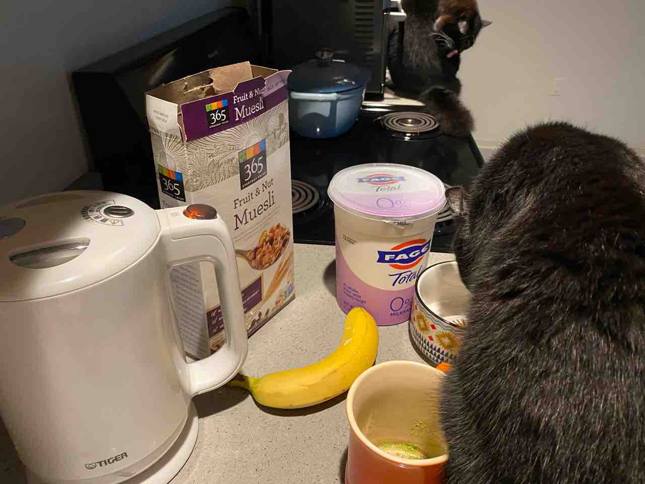 今日の朝ごはんは、いつも通りのギリシャヨーグルトにバナナ、ミューズリー。
