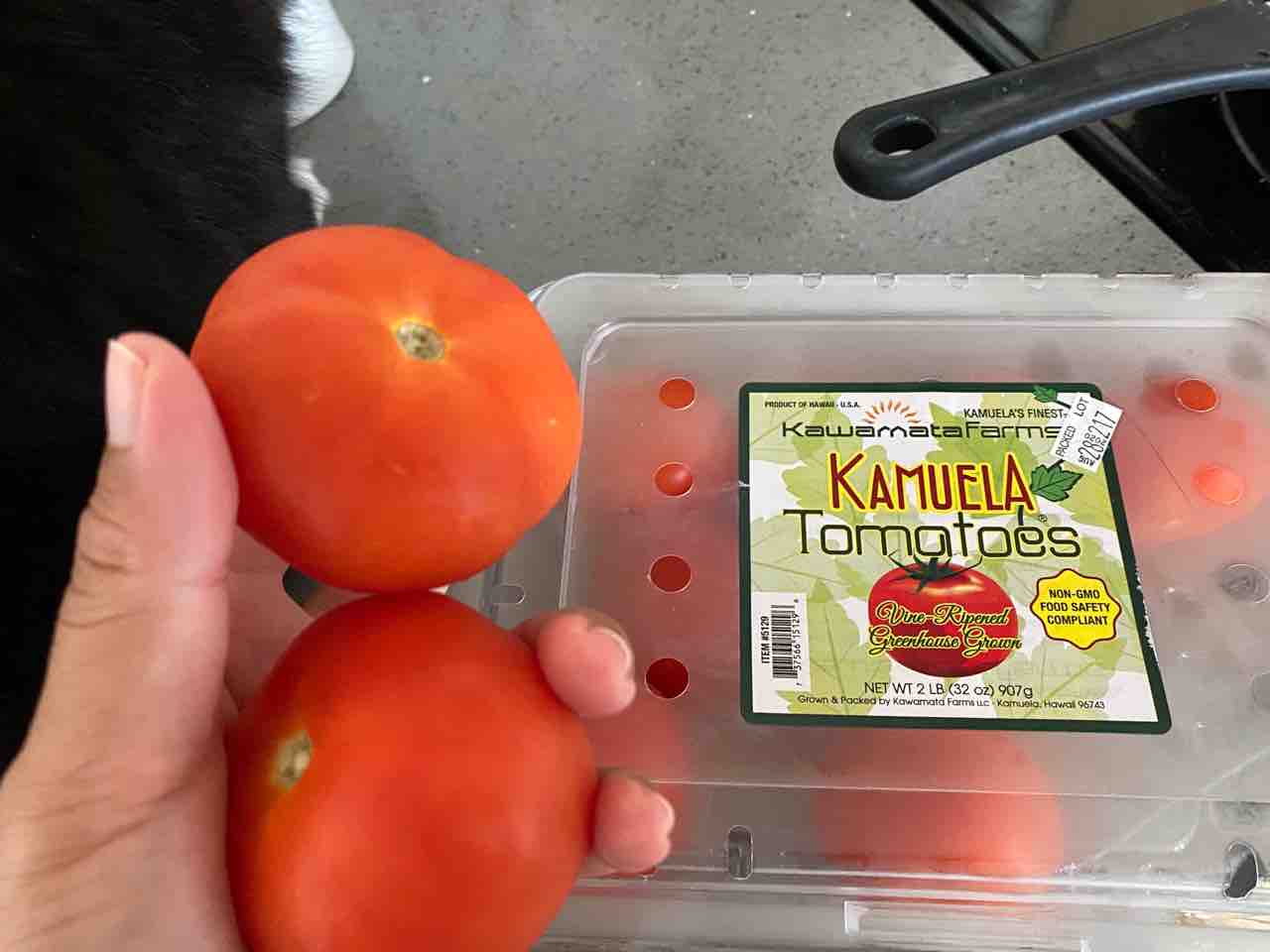 今まではカリフォルニアの安いのを買ってたんだけど、ハワイ産のカムエラトマトにしたのです。