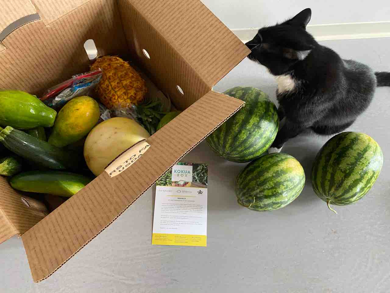 今日はコクアボックスという、カカアコのコミュニティ用の野菜ボックスをもらってきました!