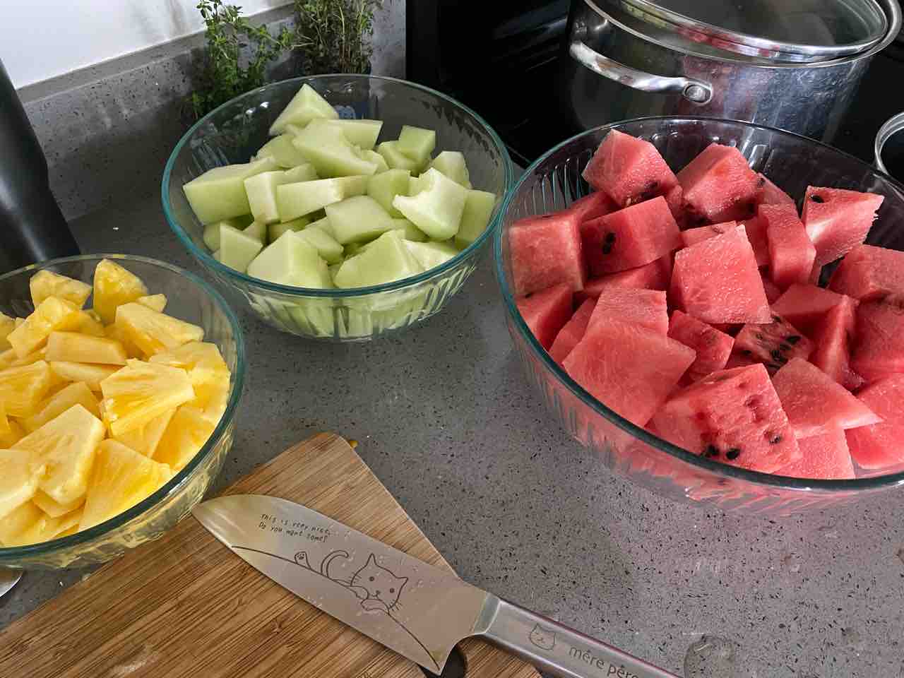 みんな車でドライブスルーで受け取ってる中、夫と歩いて行ったら、スイカ3つにメロン、パイナップル、じゃがいも…と。