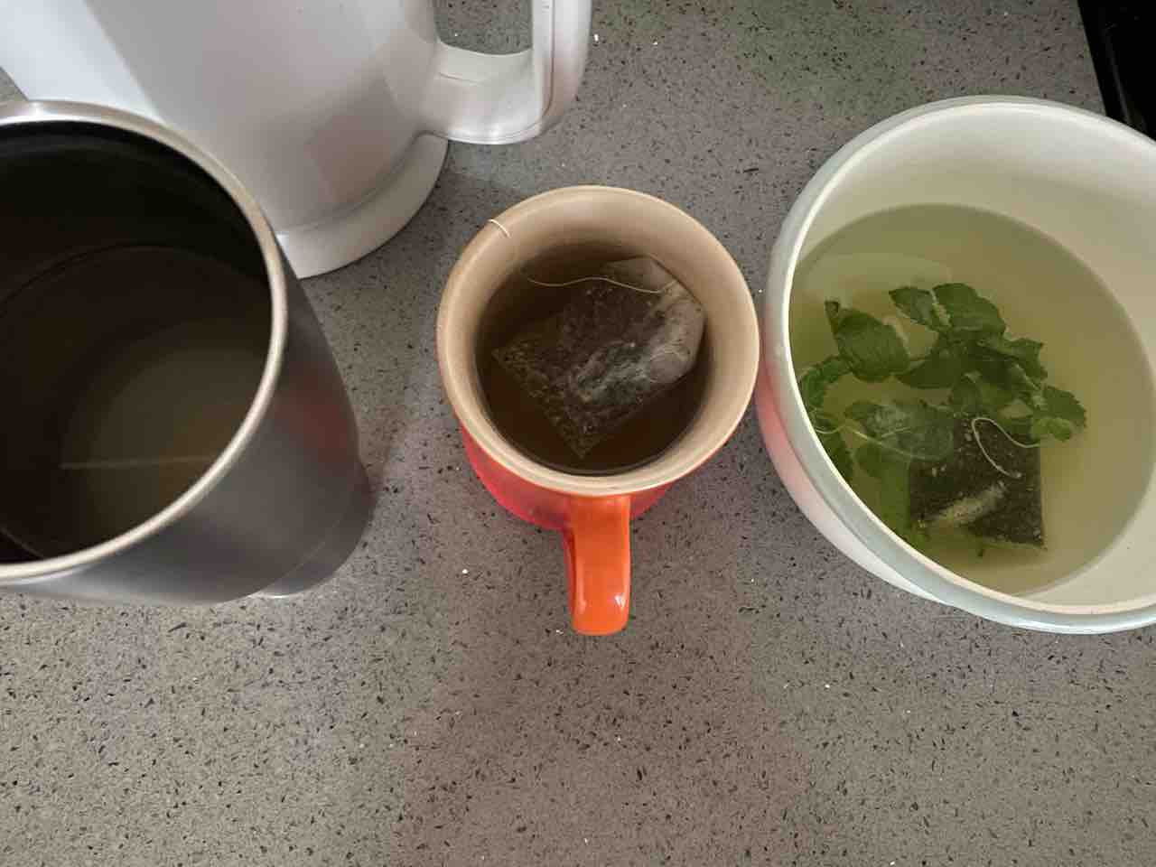 左からレモンウォーター、キューカンバーホワイトティー、ミント緑茶。