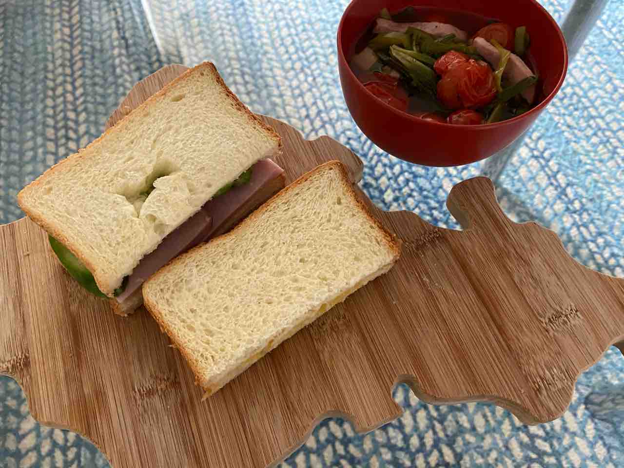 他には野菜たっぷりのスープと、ハムきゅうりサンド、マンゴーバターサンド。