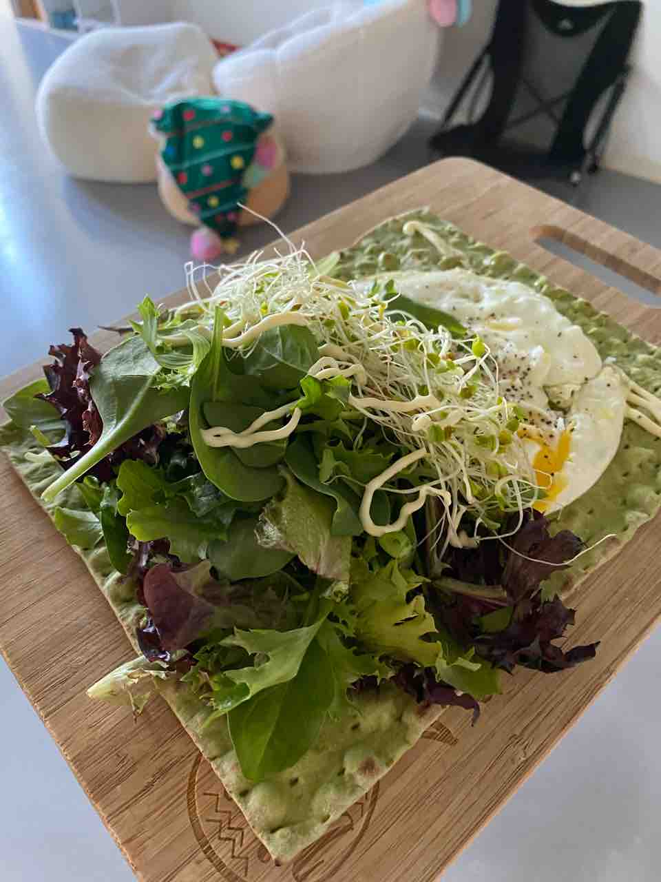 食パンだと2枚食べたくなるけど、Lavashは一枚で満足できるので良し!