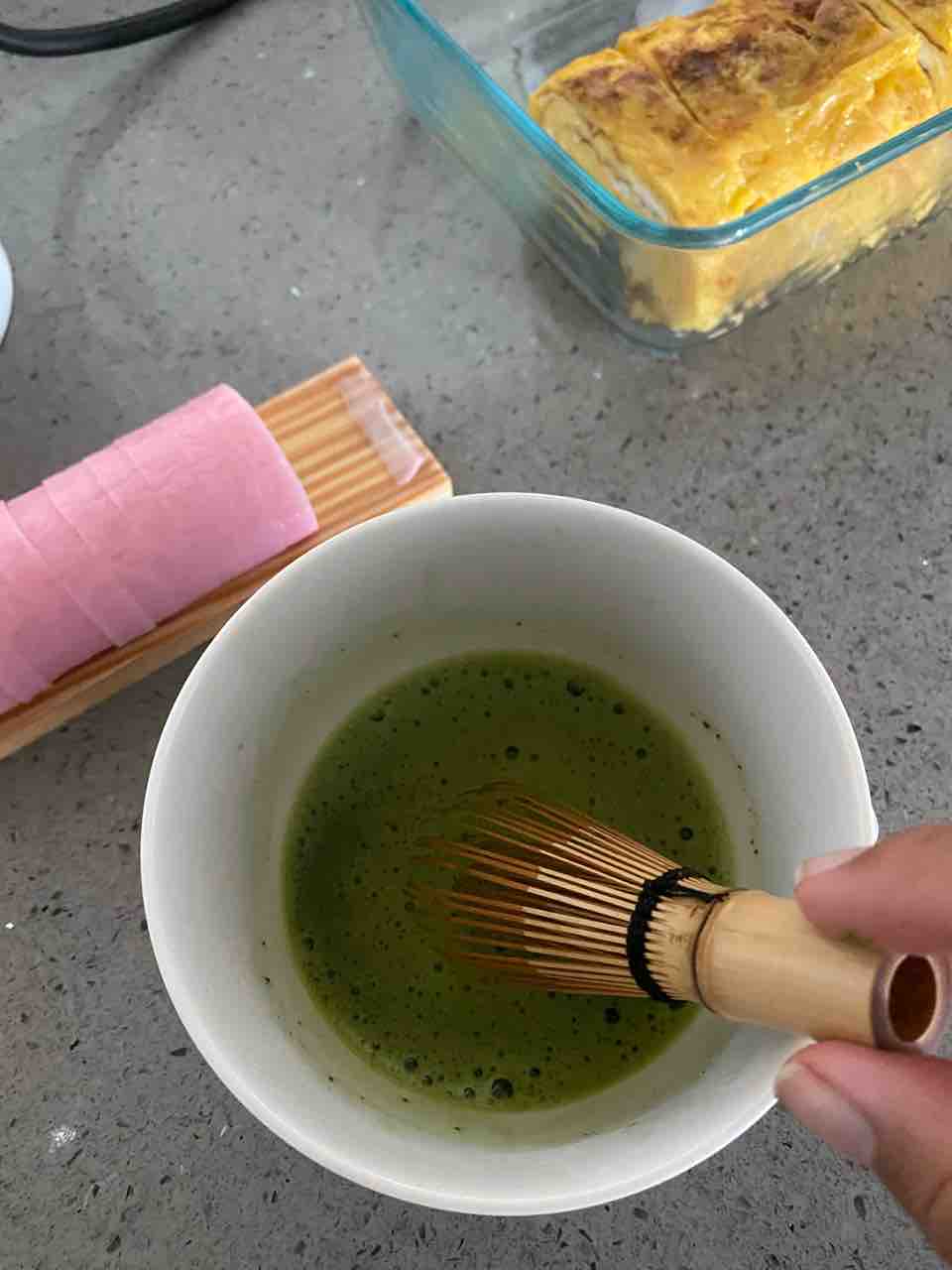 抹茶をたてて(へたっぴだけど)、かまぼこ切って。