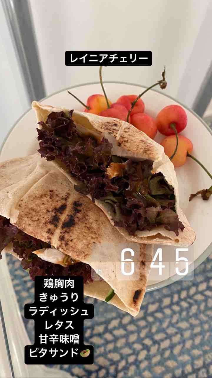 朝はピタサンドとさくらんぼ。