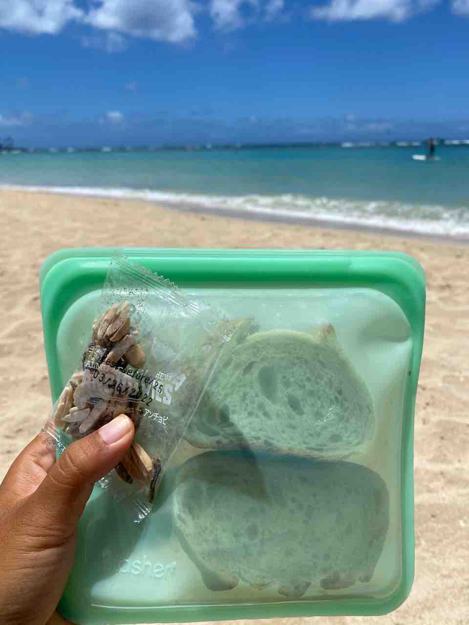 ランチを準備する時間がなかったので、サワードウバゲットと、アンチョビナッツを慌てて持ってきただけ。