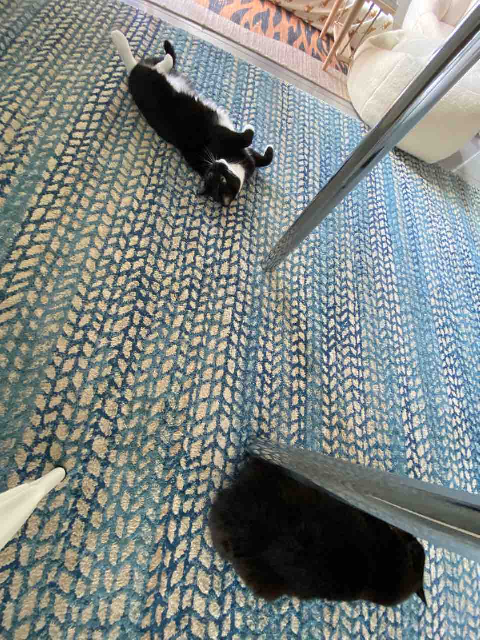 猫達に見つめられて包みます。