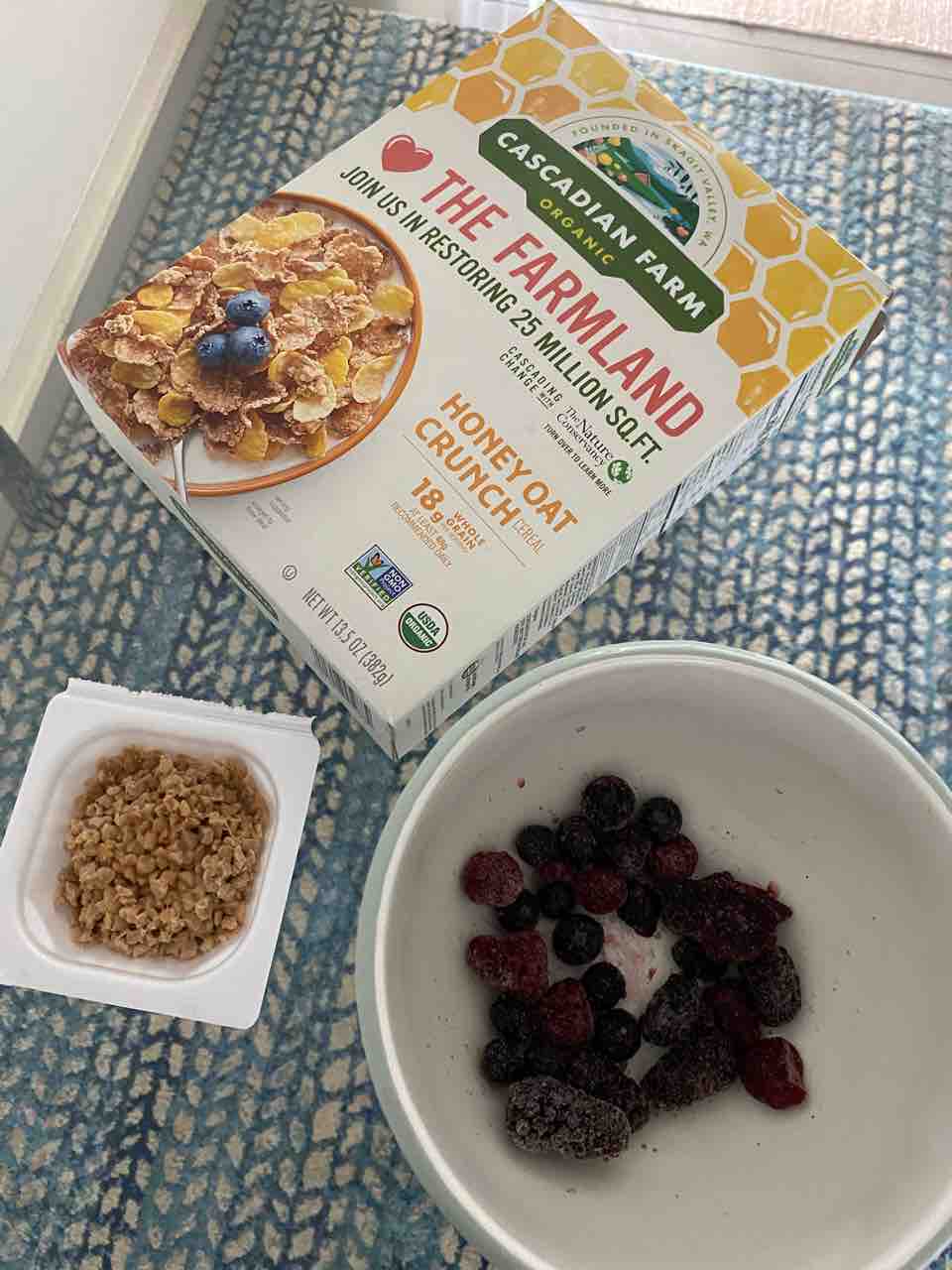 朝は納豆と、冷凍ベリーとシリアルという謎の組み合わせ。