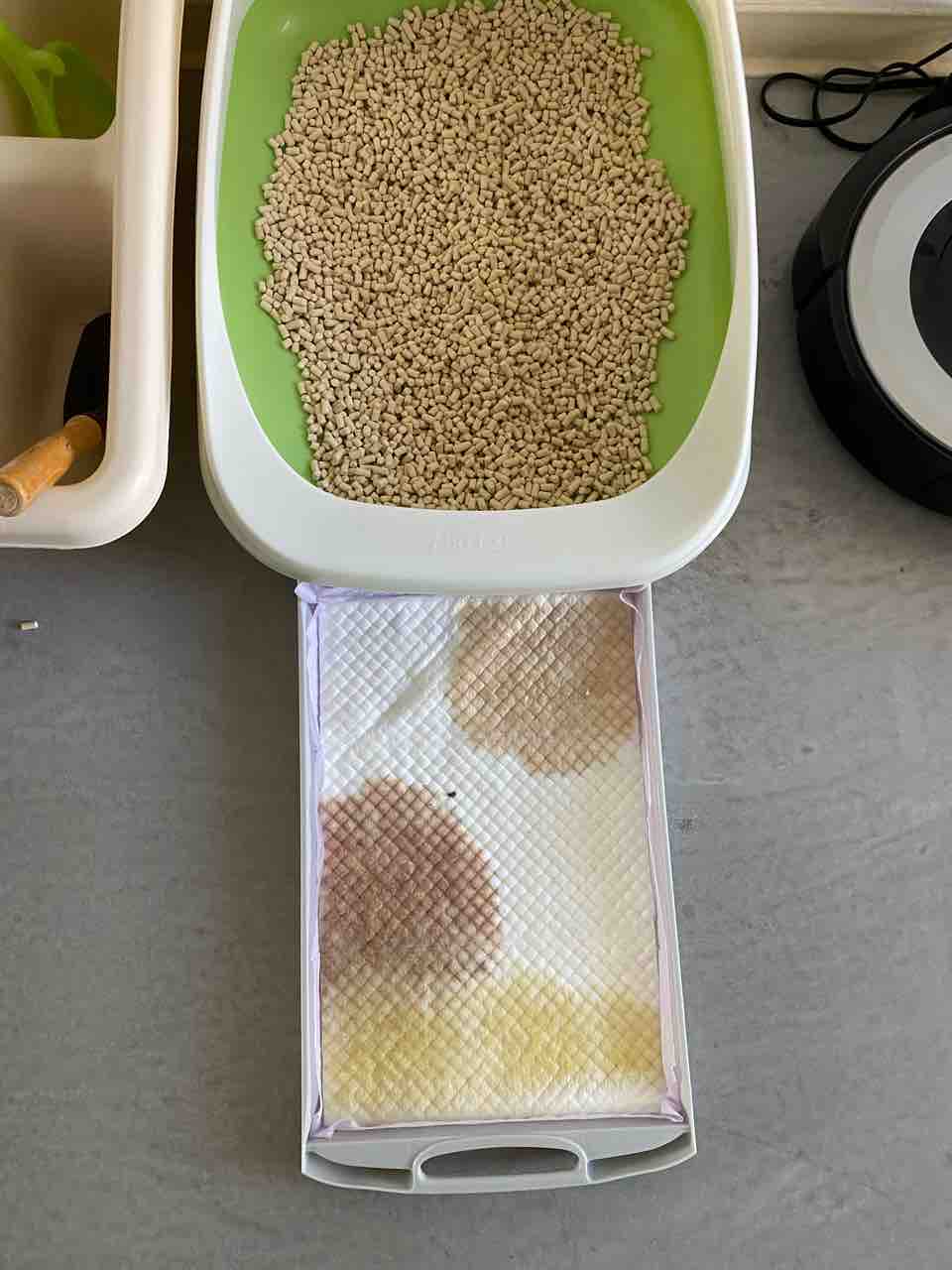 にゃんとも清潔トイレ(アメリカバージョンの名前はBreeze)なんだけれど、これのおかげで色の違いに気づけたので良かった。