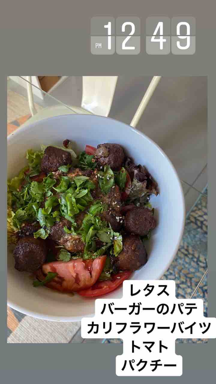 ランチは、バーガーのパテとカリフラワーバイツを焼いてレタスにドーンと載せました。