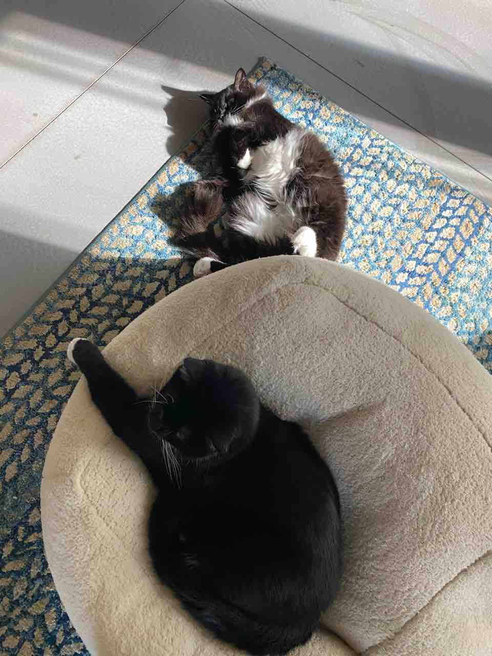 2匹が並んでくっつくことは滅多にないんだけれど、微妙な距離を保ちつつも