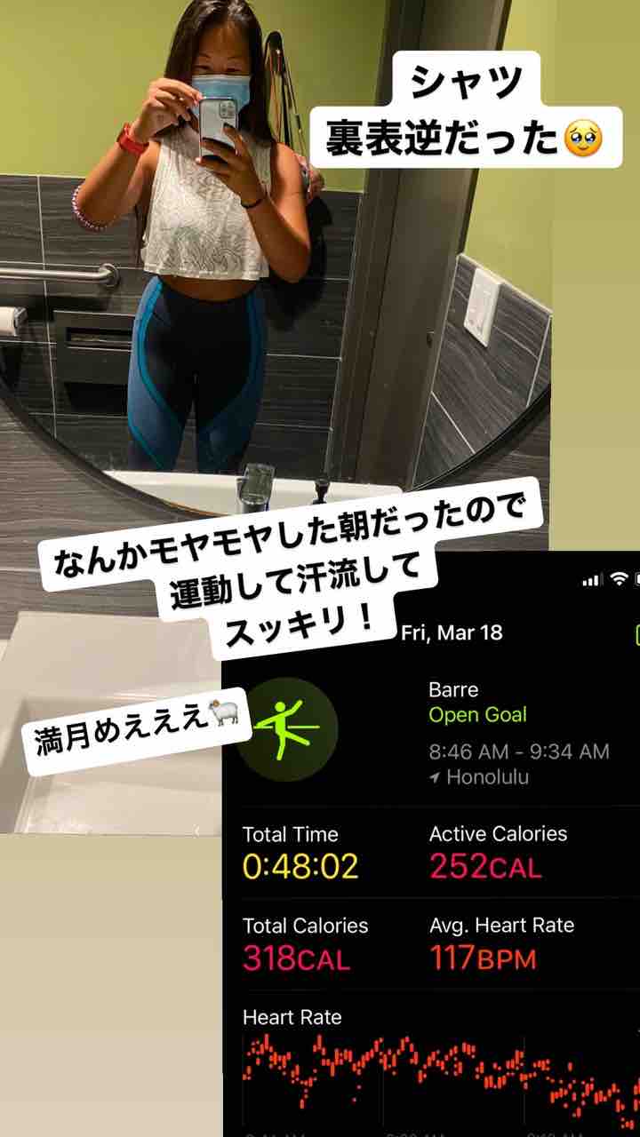 運動のクラス中に、鏡の前のバーに立って気づいた😂