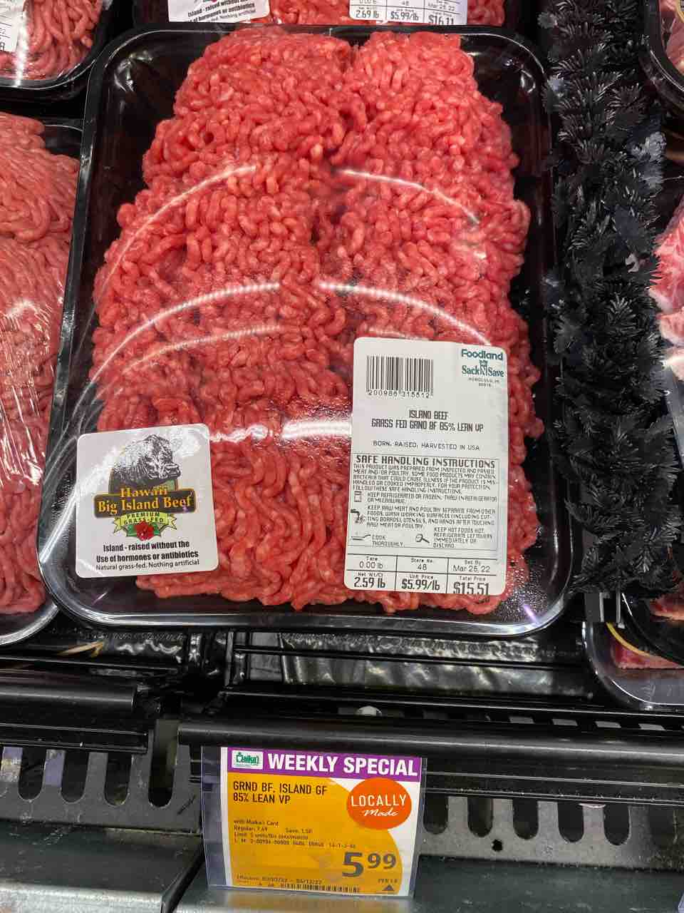 ハワイ島のグラスフェッド牛のひき肉も、このお値段♪