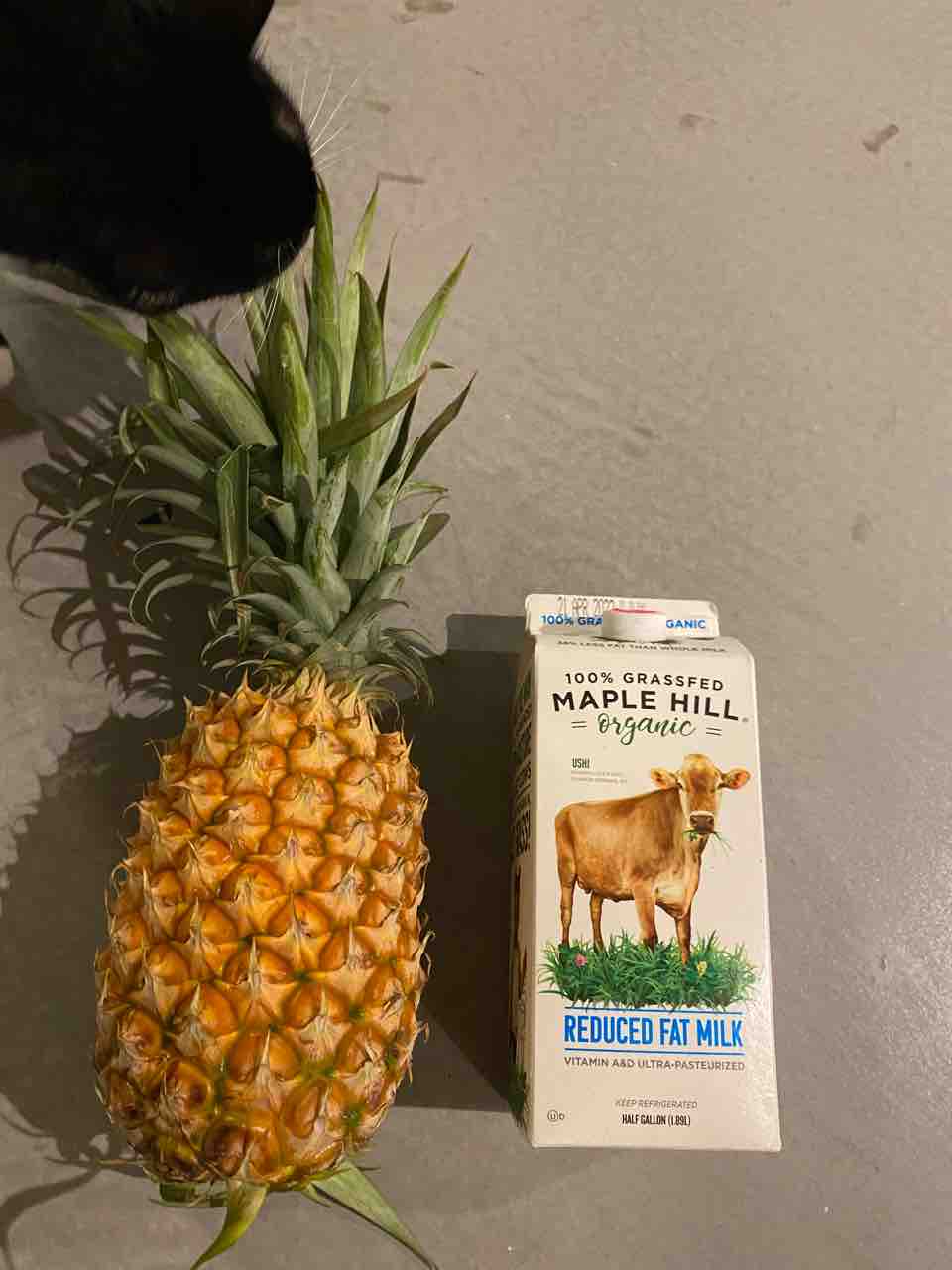 パイナップル(パウンドあたり99セントで、これは4ドルくらい)と、賞味期限間近のグラスフェッドミルク2ドル!
