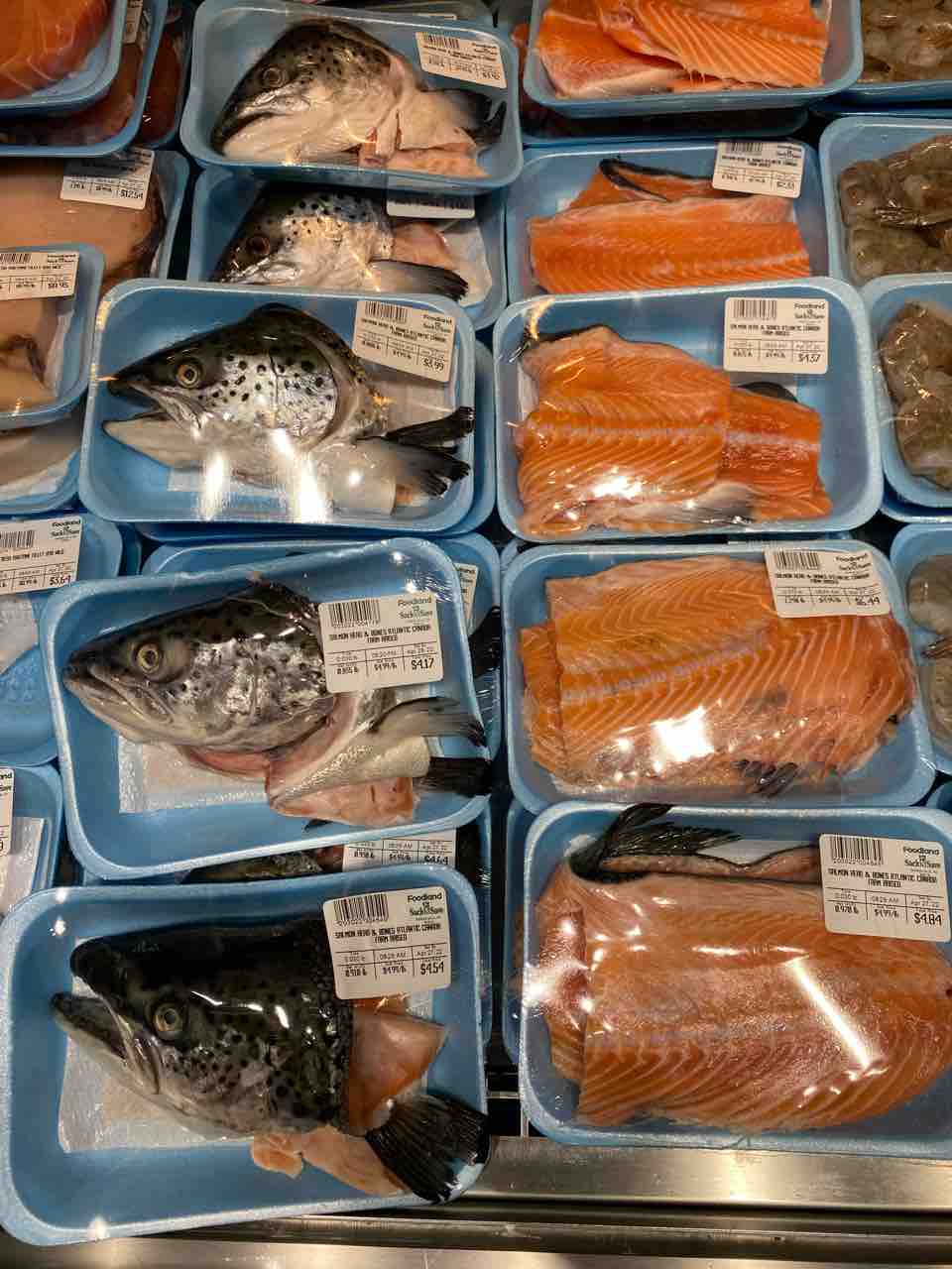 サーモンの頭やボーンのところ美味しそうだけど4ドルくらいする。