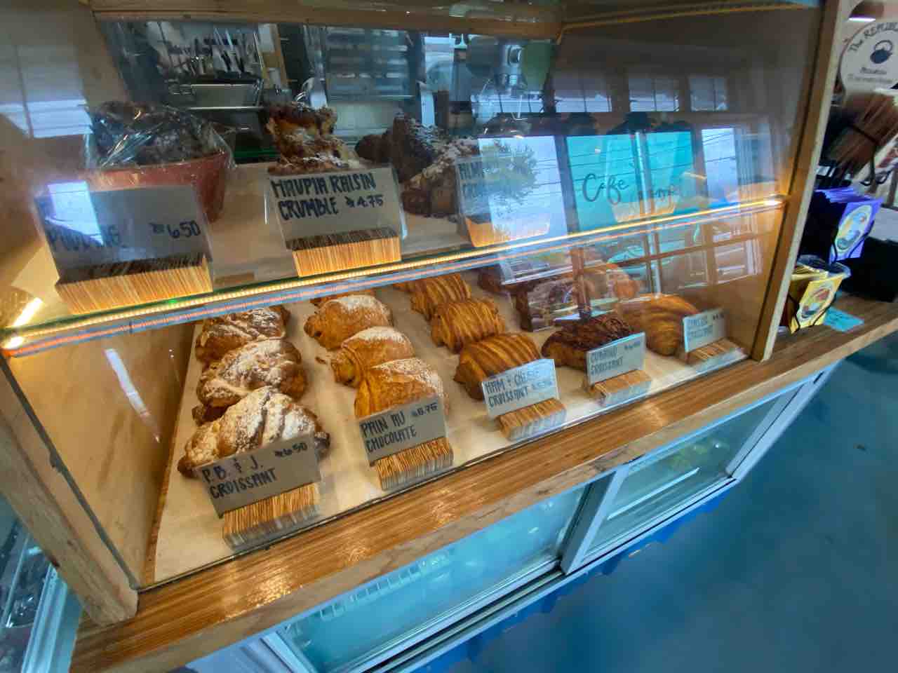 カプチーノは5ドルくらいで、ストロベリーショートクリームのクロワッサンとタルトは6.5ドルだったかな?