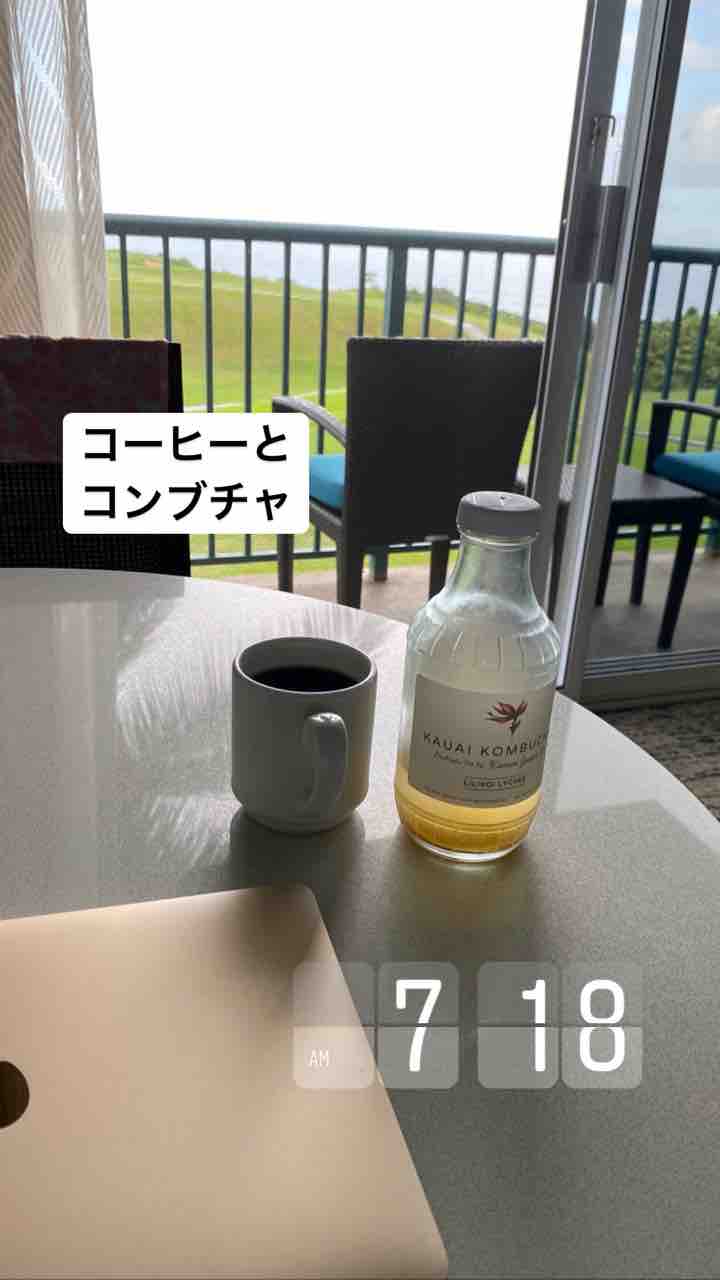 鶏の声を聞きながらコーヒーとコンブチャ。