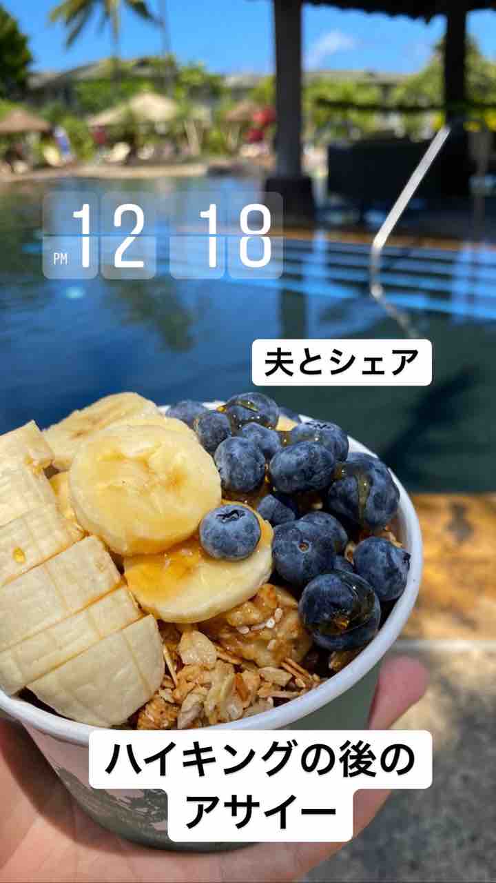 ホテルに帰ってきてアサイーボウルを夫とシェア。