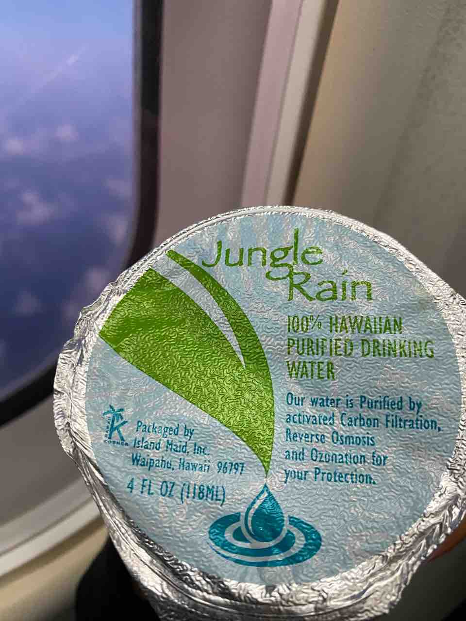 機内の飲み物は水にしてます。