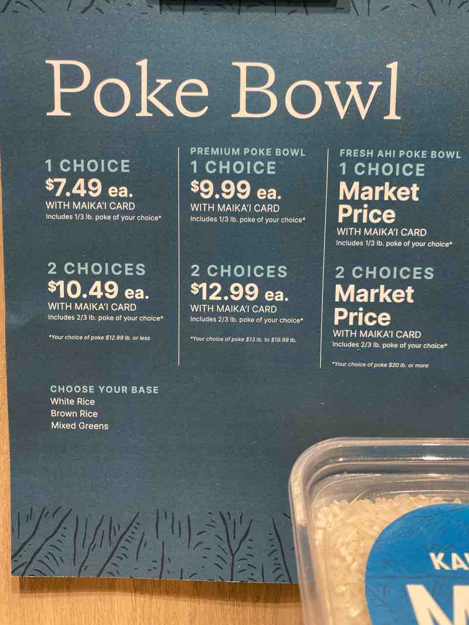 生マグロのポケボウルは1チョイスで11ドルくらいだったかな?
