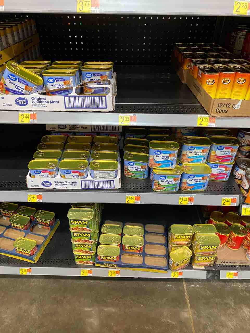 店によっては鍵のかかる棚に置かれているスパム達。(万引きされやすいアイテムらしい)
