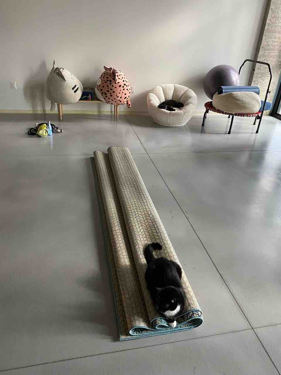あっ、そのヨガマットはマンドゥカの高いやつなので爪は立てないでねぇ〜??