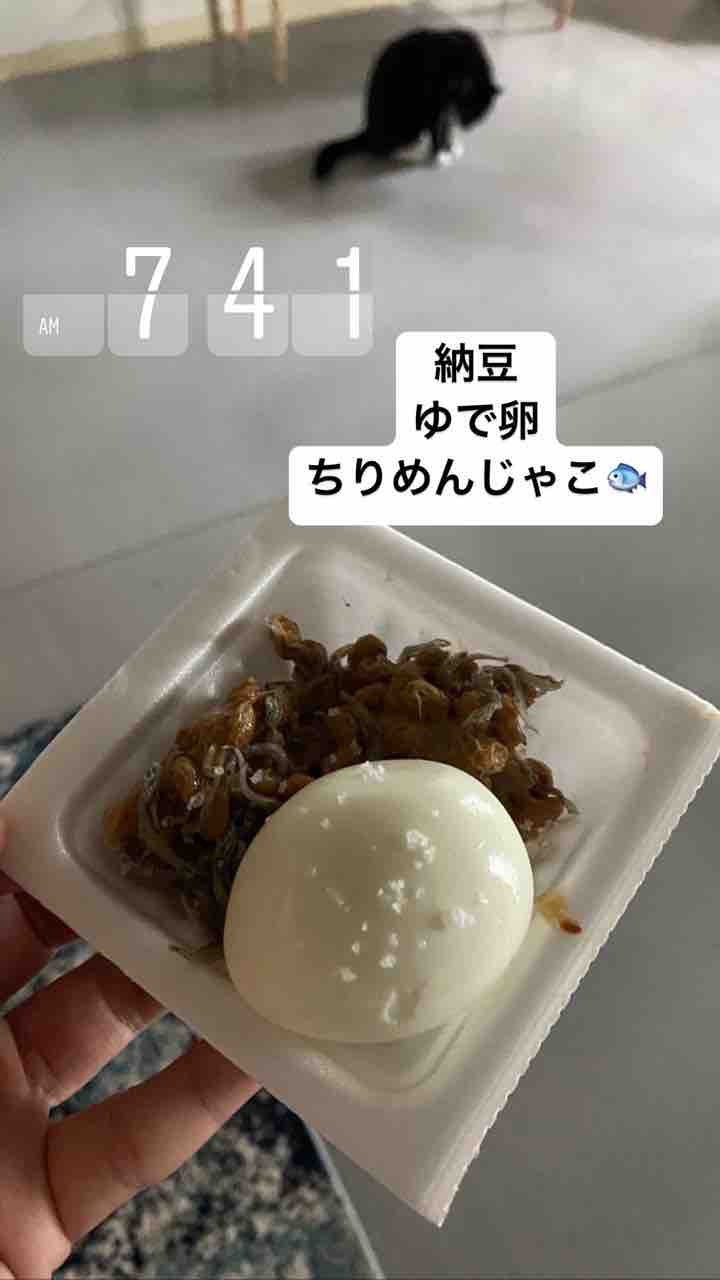 朝ごはんに、納豆と茹で卵、ちりめんじゃこを食べて。