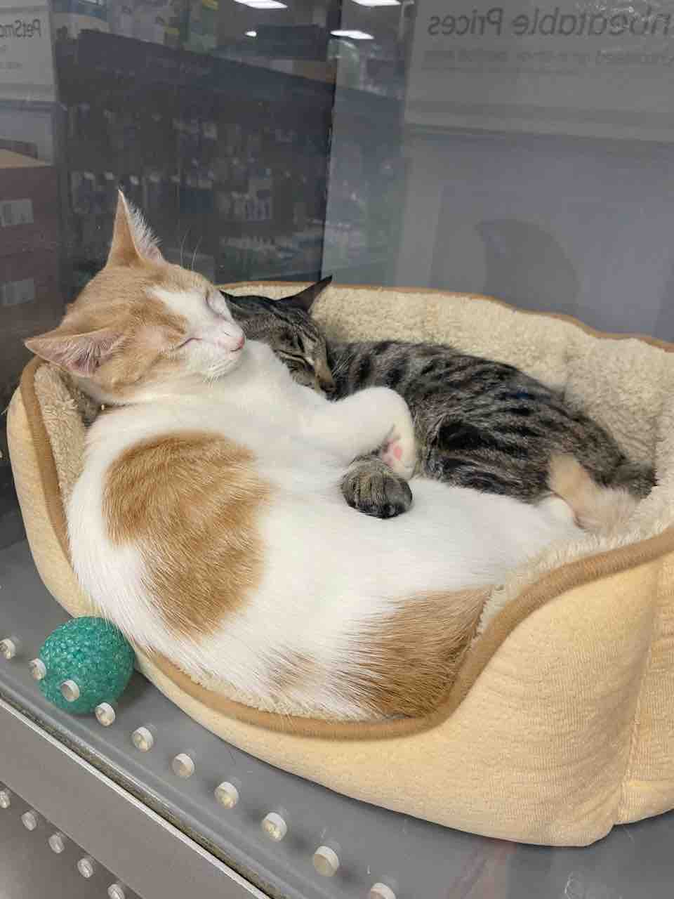 うちの猫たち、仲悪くはないけれど、こうやって寄り添って寝ることはないから憧れる〜!