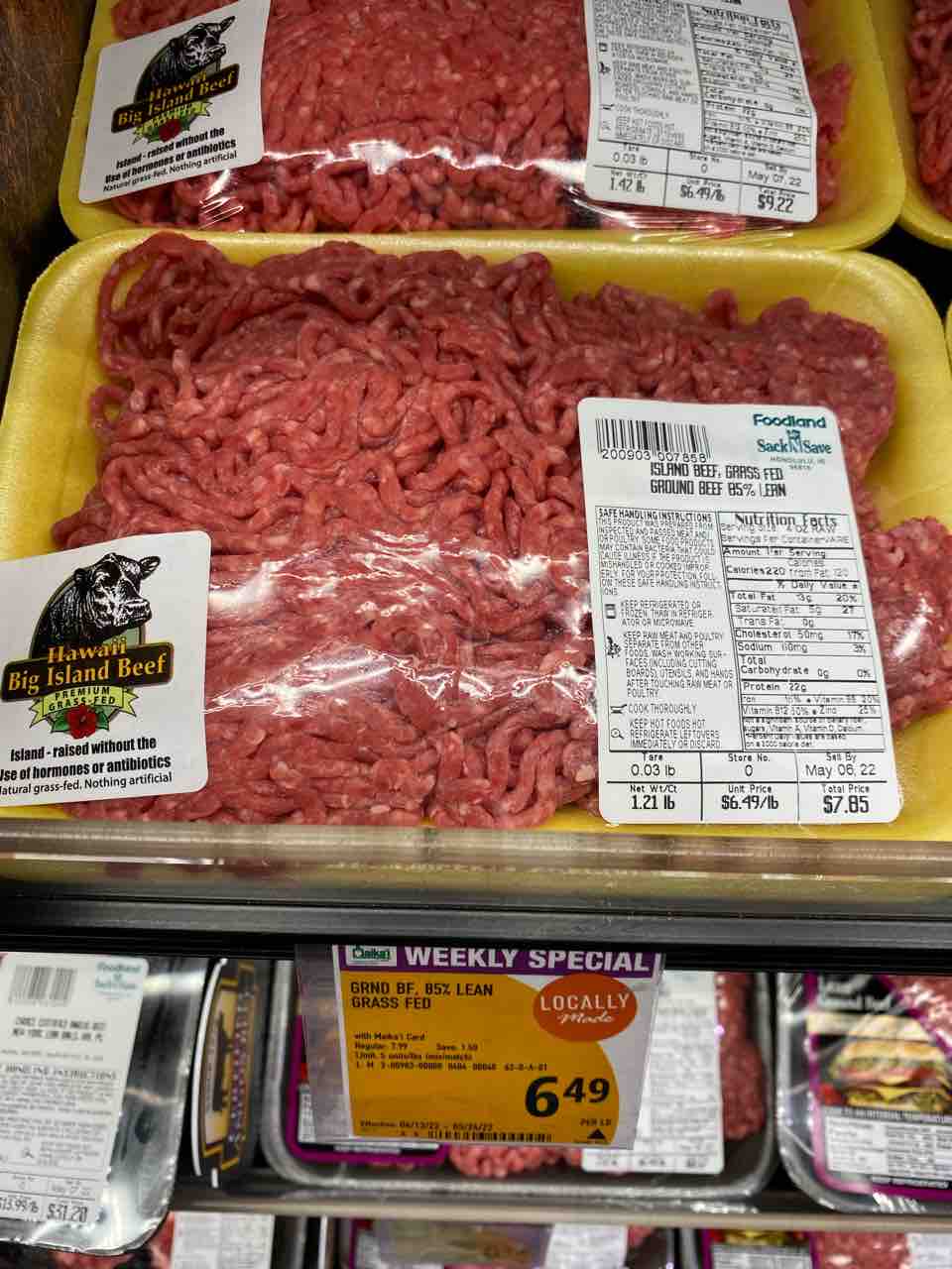 おお〜パールシティーのフードランドファームのグラスフェッドビーフ、アラモアナやカハラマーケットと違うシールが貼ってある〜!