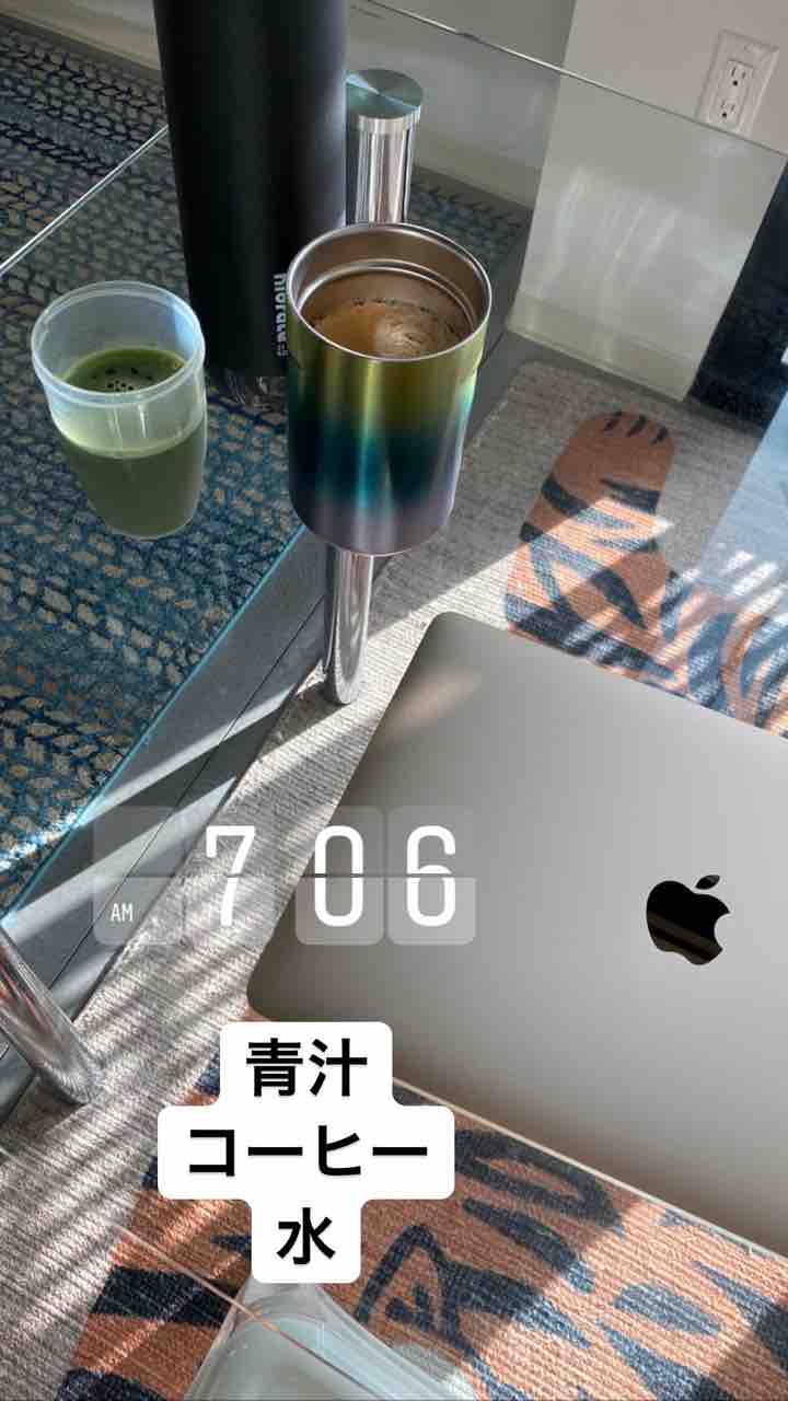 朝は青汁とホットコーヒーに、お水!