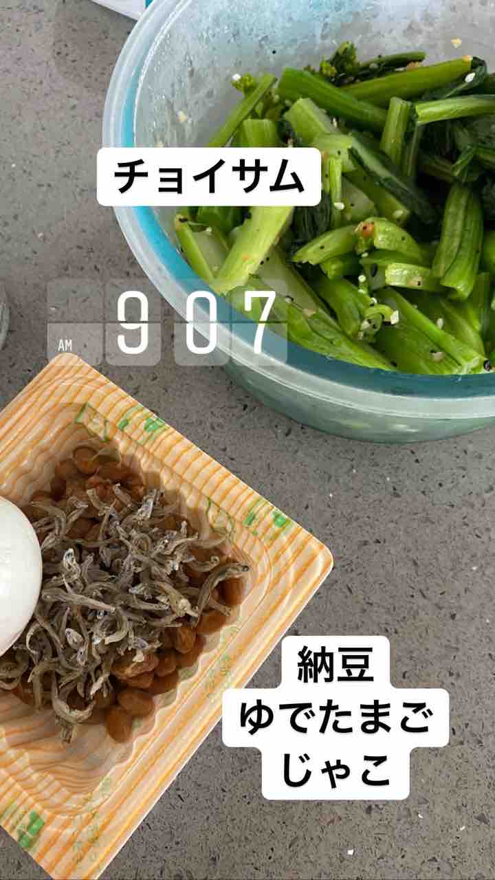 朝ごはんにチョイサムと納豆と茹で卵。