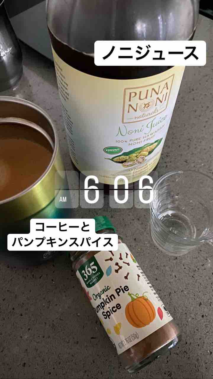 朝はノニジュースとホットコーヒー。