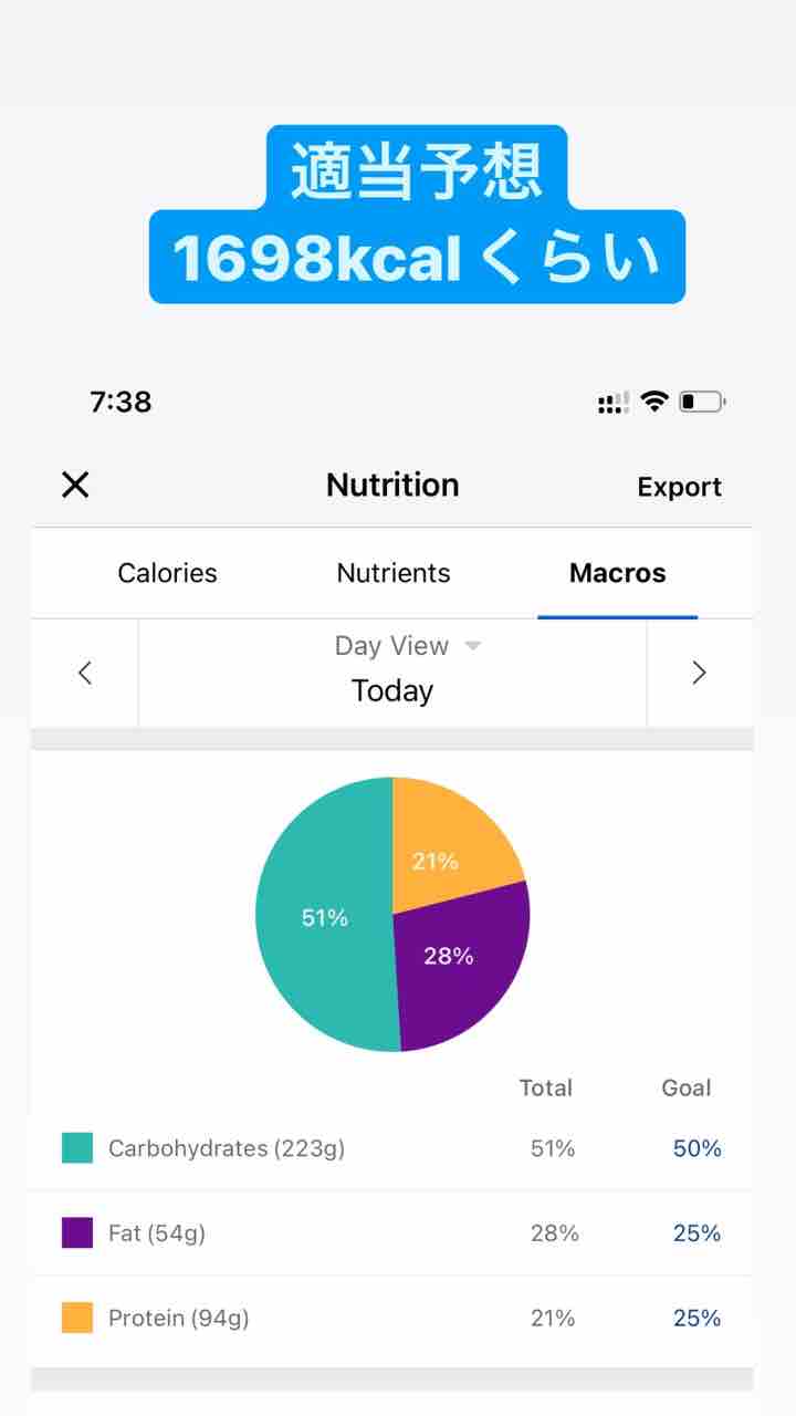 適当にカロリー入力して、1698キロカロリーくらい