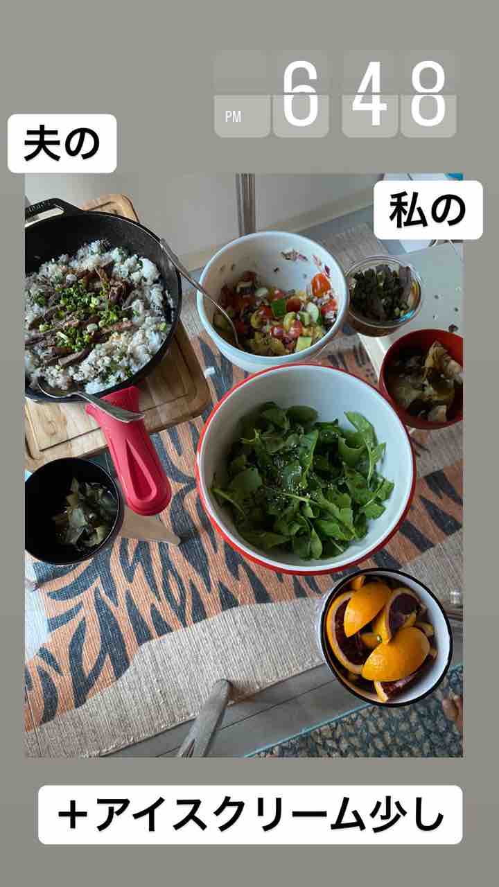 お昼にうどんと天丼食べたので、私は白米なし〜