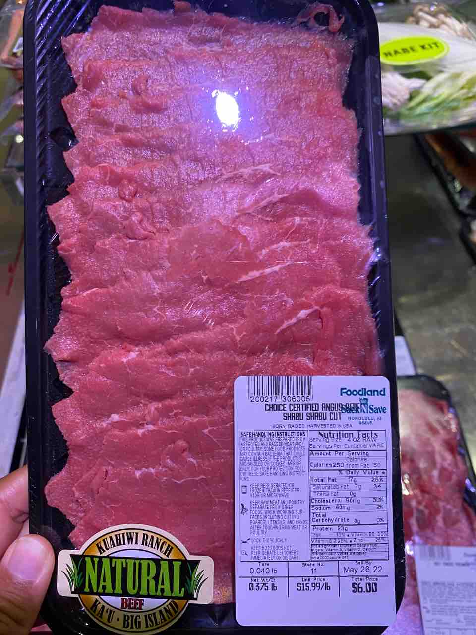 そのままフードランド行って肉を買い足し。グラスフェッドビーフのしゃぶしゃぶ肉あった〜!